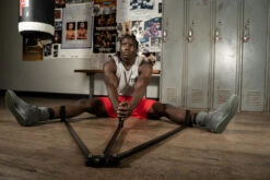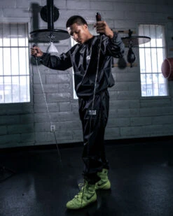 Take your hand speed, accuracy and timing to the next level. The unique design of the TITLE Trio Slipping Cord creates a constantly moving series of five foam targets that are challenging to hit alone and even more difficult with several fighters lined-up on the bags simultaneously. These horizontal bags provide an excellent tool for slipping, working on side-to-side movement, stepping inside-and-out, as well as developing eye-hand coordination. The durable elastic bungee cord is 15’ relaxed and stretches to as much as 29’ with a carabiner clip attachment on each end for quick mounting to any eye bolts, poll or ring corner post. Each target features a synthetic leather outer shell and measures 7” (across) x 4” (height) x 12.5” around (circumference.)